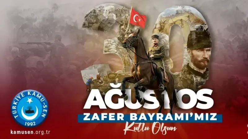 Türkiye Kamu-Sen olarak, milletimizin birlik ve beraberlik içinde yazdığı bu destanı şerefle hatırlıyor, hatırlatıyoruz. 30 Ağustos, yalnızca askeri bir başarı değil; aynı zamanda milletimizin azmi, fedakârlığı ve ortak iradesinin tüm dünyaya gösterildiği bir zaferdir. Bu bilinçle, ülkemizin tarihine ve talihine ilelebet sahip çıkmaya devam edeceğimizi bir kez daha vurguluyor; tüm milletimizin Zafer Bayramı’nı coşkuyla kutluyoruz.” dedi.